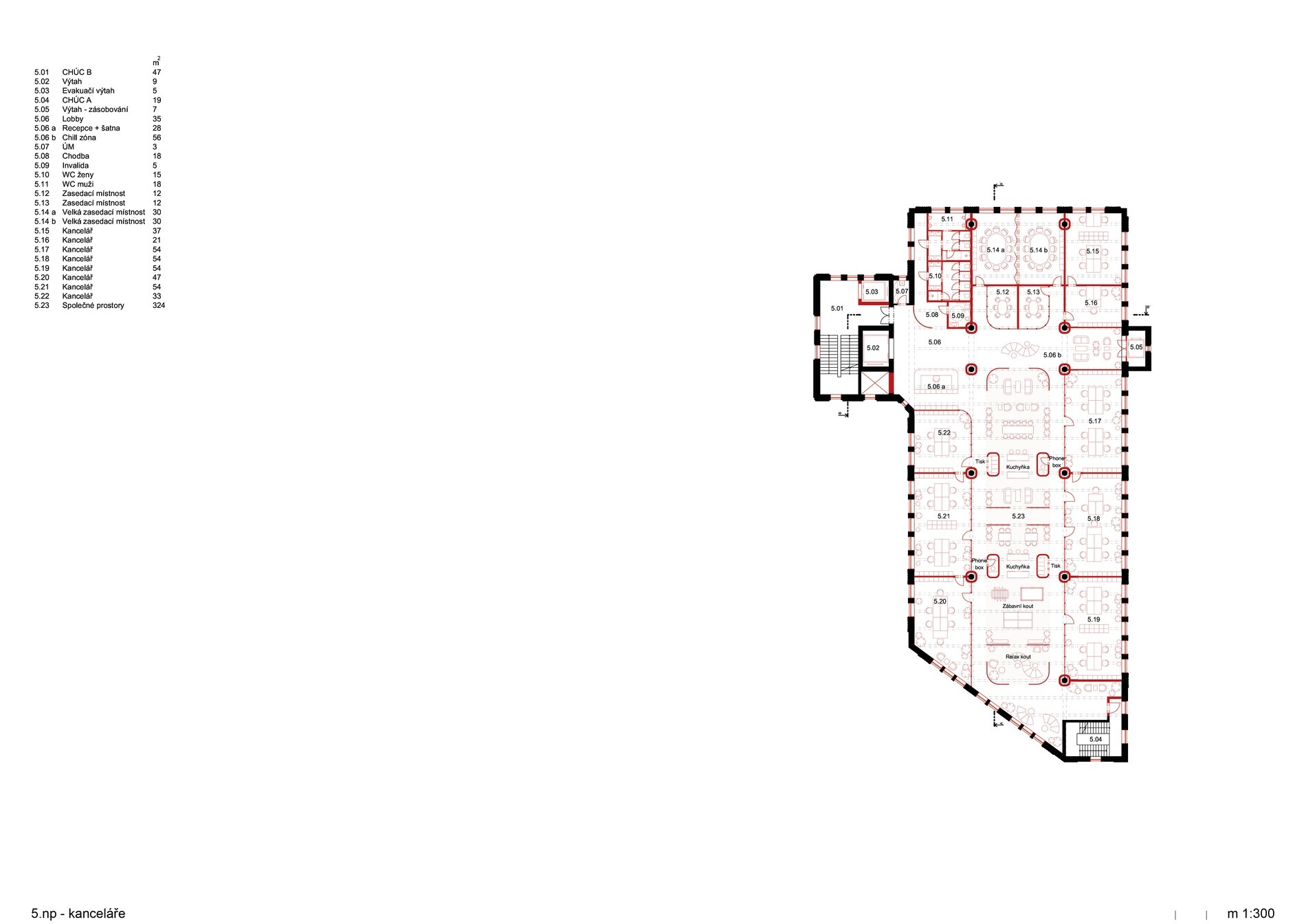 Půdorys 5.np. Zdroj: DP Josef Matyska, FA ČVUT