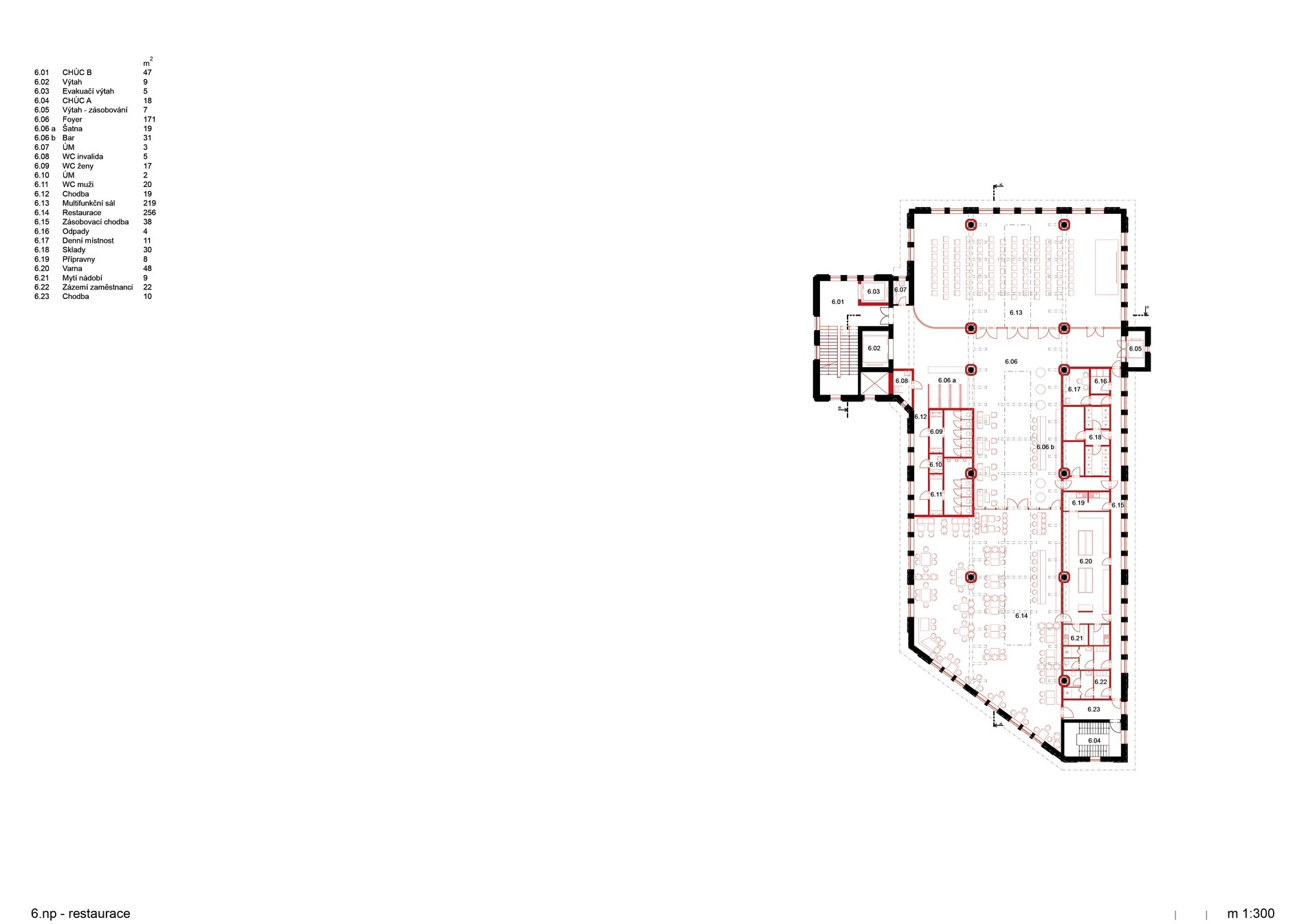 Půdorys 6.np. Zdroj: DP Josef Matyska, FA ČVUT