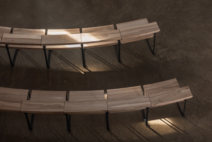 „Zvolil jsem princip centrální stavby, která na vrcholku mezi poli působí jako maják, orientační bod v prostoru i v duchovním smyslu. Místní si vybrali jako patronku Pannu Marii Bolestnou, symbol utrpení. Její příběh a emoce se zrcadlí v prostoru. Na místním prachu a hlíně, jež tvoří podlahu, stavíme nový chrám,“ podotýká Jan Říčný nad pečlivě provedenými výkresy jeho ateliéru.