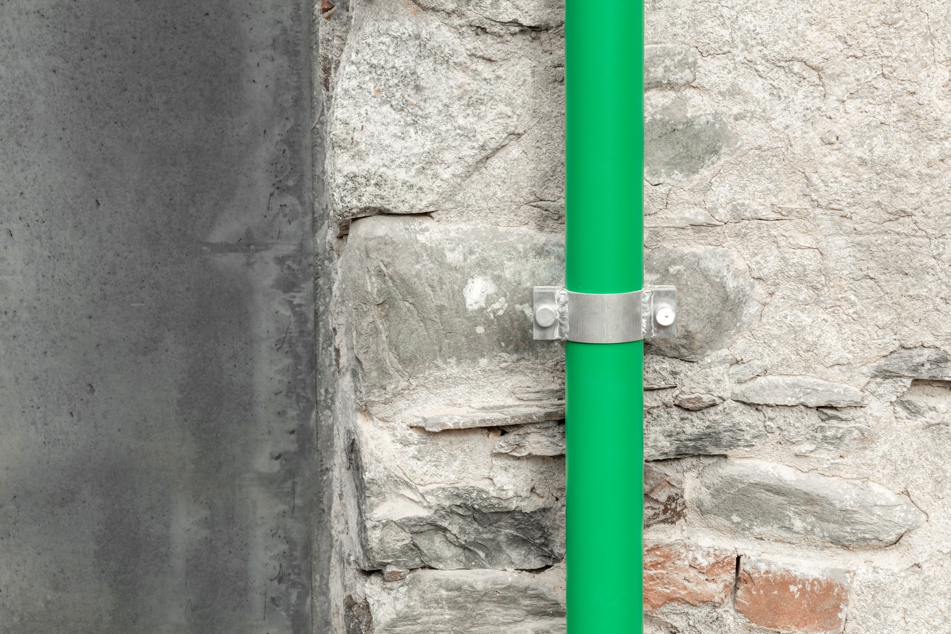 Jsou tu i nápadné nové doplňky, které dávají celku odlišnou identitu. Typicky například okap, zelený dešťový svod. Je to hmotný designový prvek, který k té vizuální „proměně“ hodně přispívá. Foto: Gustav Willeit