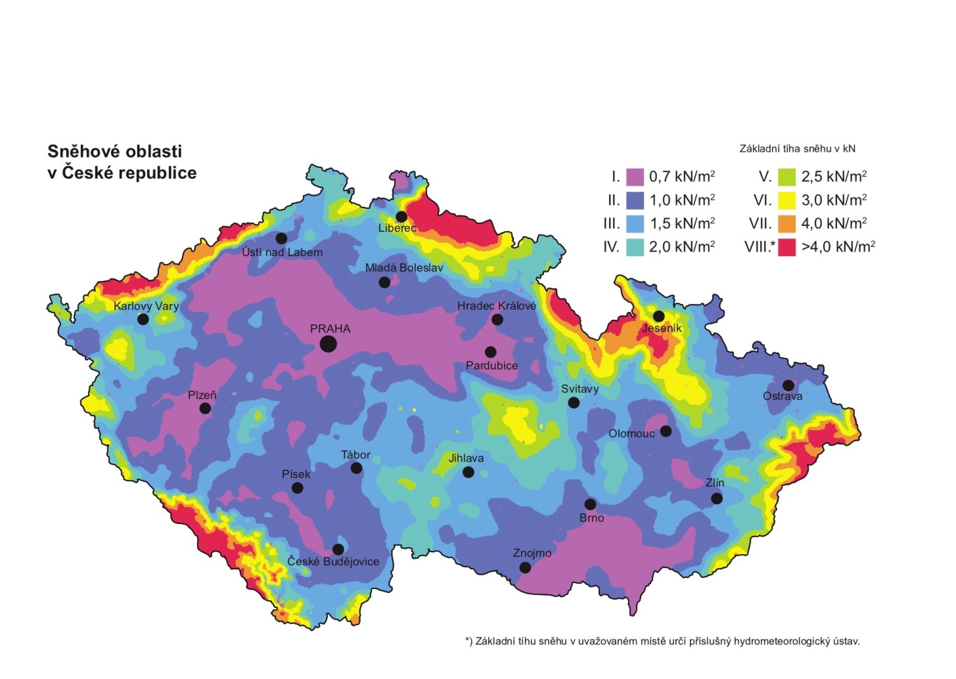 Sněhová mapa ČR. Zdroj: SATJAM s.r.o.