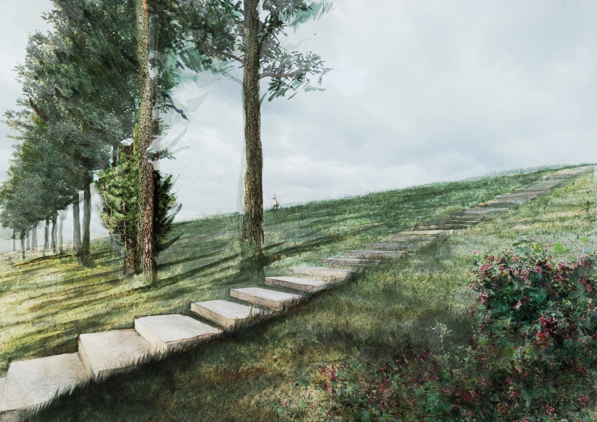 Z architektonicko-urbanistického hlediska si představuji „hřbitov budoucnosti“ jako komponovanou přírodní krajinu, kterou návštěvník prochází. Může být součástí systémů ekologické stability v krajině. Může se nacházet v blízkém extravilánu sídel, stejně tak ale může vzniknout taková oáza biodiverzity i v rámci městských zástaveb, třeba na původních brownfieldech a podobně, přestože tam, skrze tlaky trhu, je vznik z mého pohledu méně pravděpodobný. O biodiverzních pohřebištích lze uvažovat jako o škále – od zelené infrastruktury až po hřbitovní rezervace. Mohla by v něm být síť cestiček nebo i vyvýšených dřevěných lávek, které provádějí lidi různými částmi území. Nechyběla by místa k zastavení a rozjímání– například vyhlídky nebo zákoutí pro zapálení svíčky, například na vodních prvcích. Součástí by měly být i drobné konstrukce funkčního, spirituálního a emocionálního charakteru – drobné stavby jako altánky či útulny k rozjímání a také symbolické prvky, třeba průchozí brána, která metaforicky spojuje různé biotopy a světy mezi sebou. Myslím, že moderní krajinný hřbitov nám umožňuje uvažovat scénograficky a záměrně prolínat spirituální a přírodní zážitek z místa, takže i přes, pro někoho možná zdánlivě radikální proměnu hřbitova jak ho známe, by kulturní, umělecká i ekologická funkce mohly být ve vzájemné rovnováze a ku prospěchu jak prožitku pozůstalých, tak i potřeb krajiny.