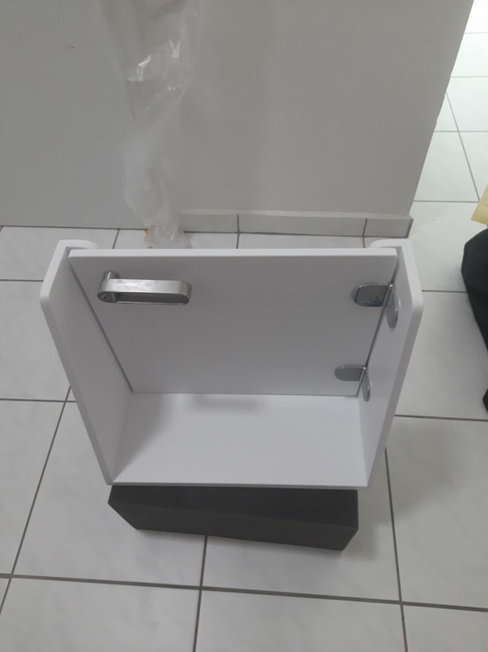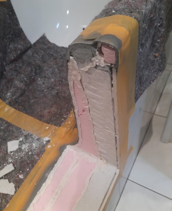 Další činností je vyřezání otvoru do vany (obr. 3). Po začistění otvoru se provede výplň vyniklých dutin nenasákavým polystyrenem (obr. 4) a utěsnění všech vzniklých spár. Poslední etapou je vsazení dvířek a utěsnění spáry. Po ukončení montáže uklidí a odnese firma všechny odpadní materiály.
