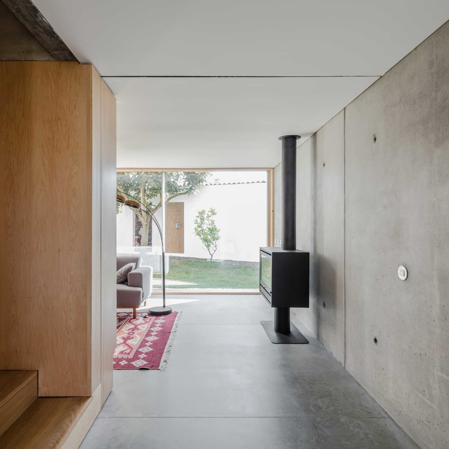 Dům má vyváženou energetickou bilanci. Nepřehřívá se, beton teplo pomalu akumuluje a slouží jako tepelná bariéra. O vytápění navíc se pak starají kamna. Foto: Joao Morgado