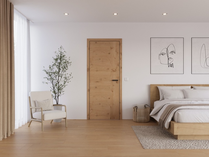 Bezfalcové dveře SAPELI TENGA, dýha Dub sukatý, zárubeň NORMAL, klika Minimal. Zdroj: SAPELI
