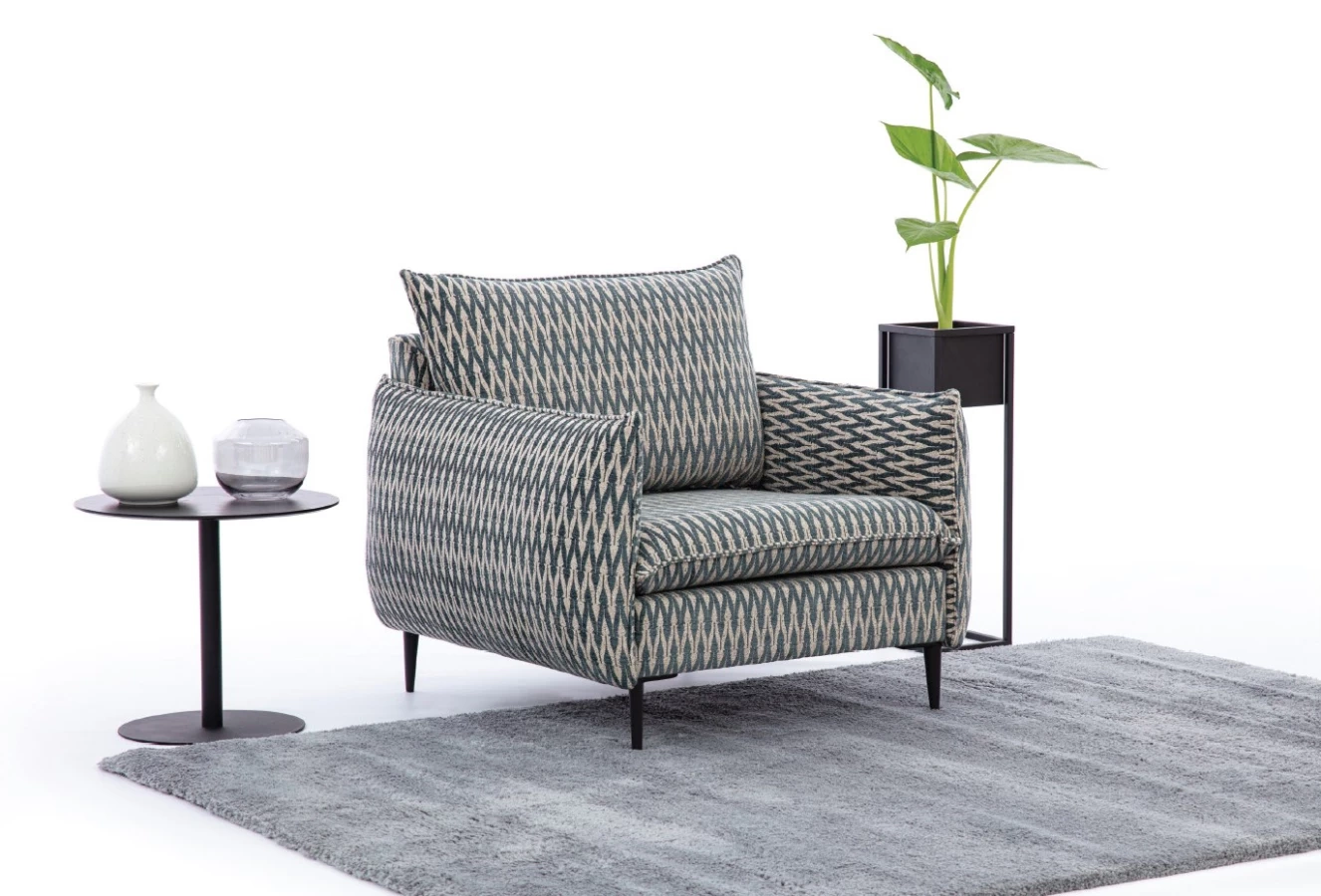 Křeslo Sensi v šedé barvě vedle smaragdově zelené pohovky Gappita, nebo sametové křeslo Next s látkovou pohovkou Candy? A co takhle vzorované křeslo Trosini s hladkou béžovou pohovkou Glossy? Fantazii se meze nekladou.