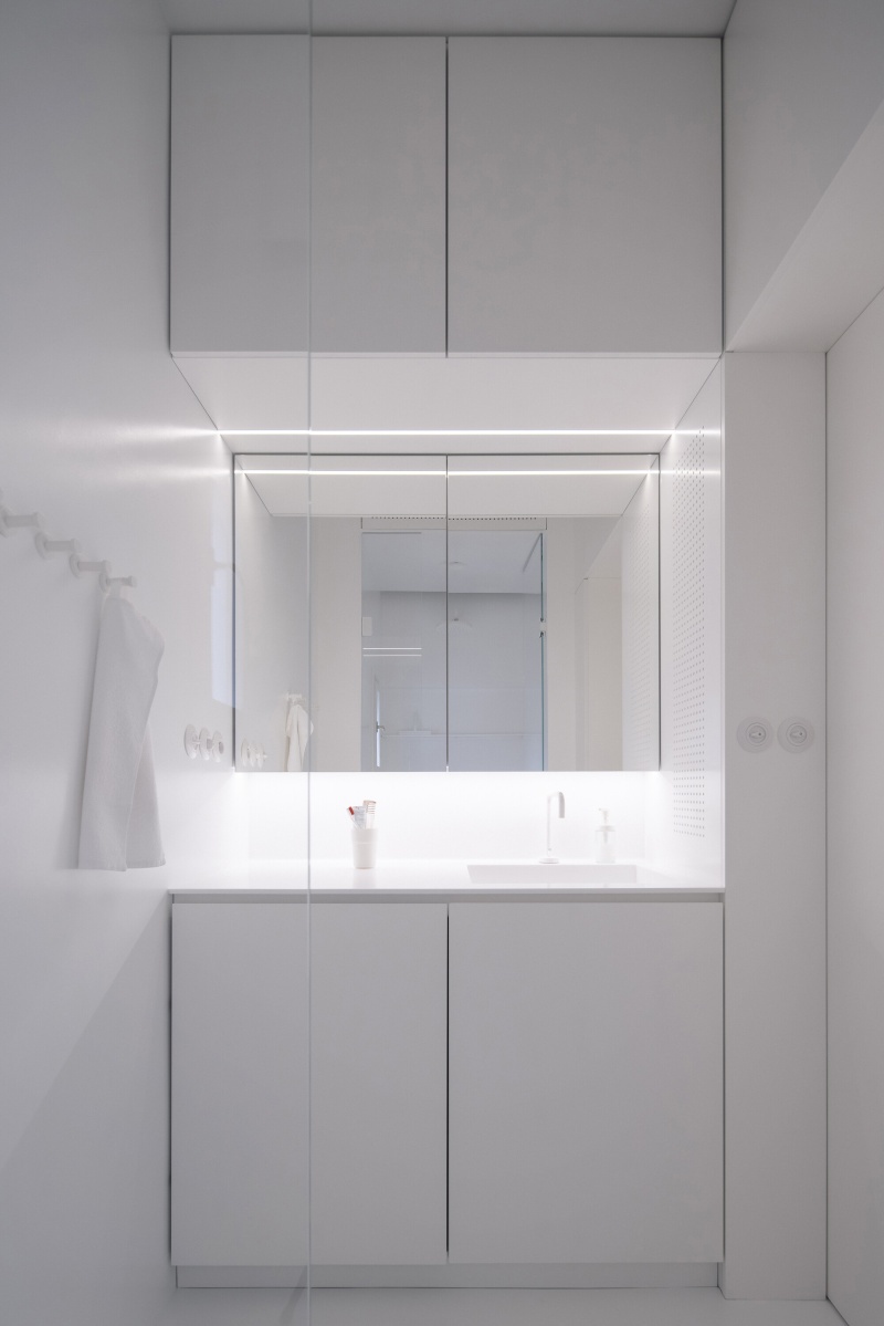 Koupelnová stěna a umyvadlo. Foto: Alex Shoots Buildings