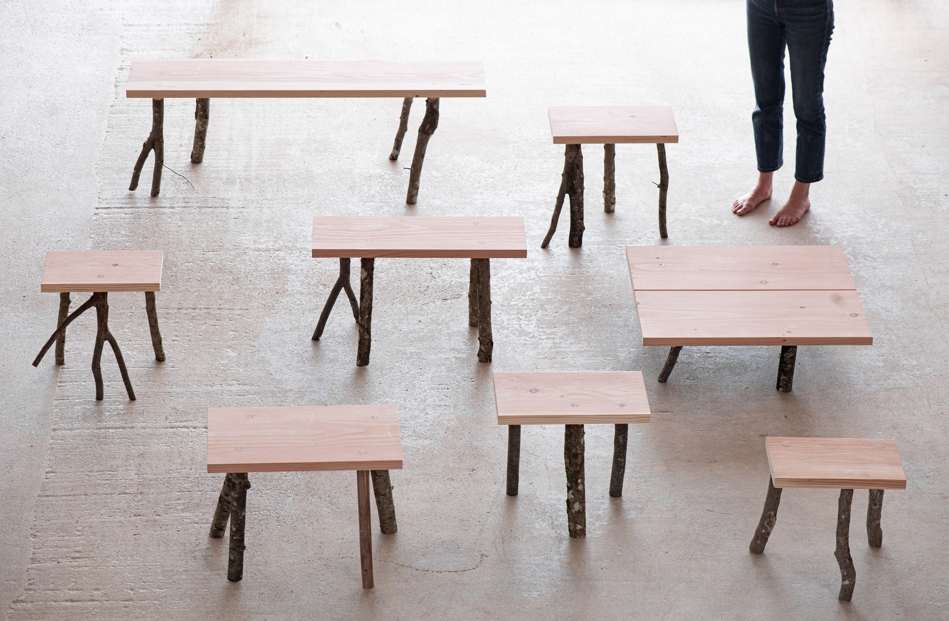„Na jedné straně stojí evropský průmysl s rychlým vývojem a vysokou úrovní inženýrství, jehož výsledkem je vysoce funkční objekt z recyklovaných a recyklovatelných materiálů. Na druhé straně pak vzniká naprosto obyčejná stolička z dřevěných větví nasbíraných v lese s kusem pevné douglasky z jiného lesa vzdáleného méně než pět kilometrů. Je rustikální a tudíž odolná, takže otázka recyklace tady vlastně ani nevzniká. Jde o ryze osobní předmět, který se bude v rodině dědit po generace. Srdcem každého objektu jsou vždy muži a ženy, kteří jej tvoří,“ dodává Erwan Bouroullec s odkazem na vlastní výrobu (instalace Man Made), kde jsou spojujícím prvkem opět větve.