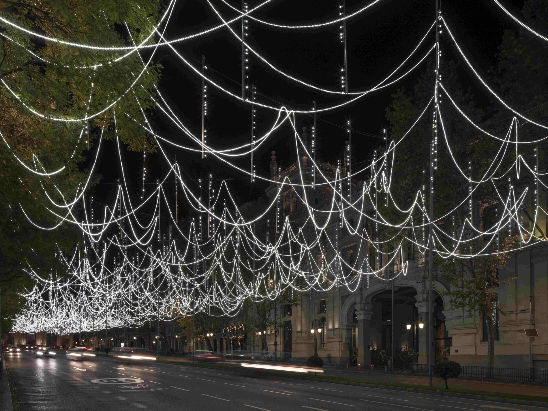 Světla v noční ulici vykouzlila iluzi noční oblohy a padajících sněhových vloček. Foto: ImagenSubliminal/Miguel de Guzmán + Rocío Romero
