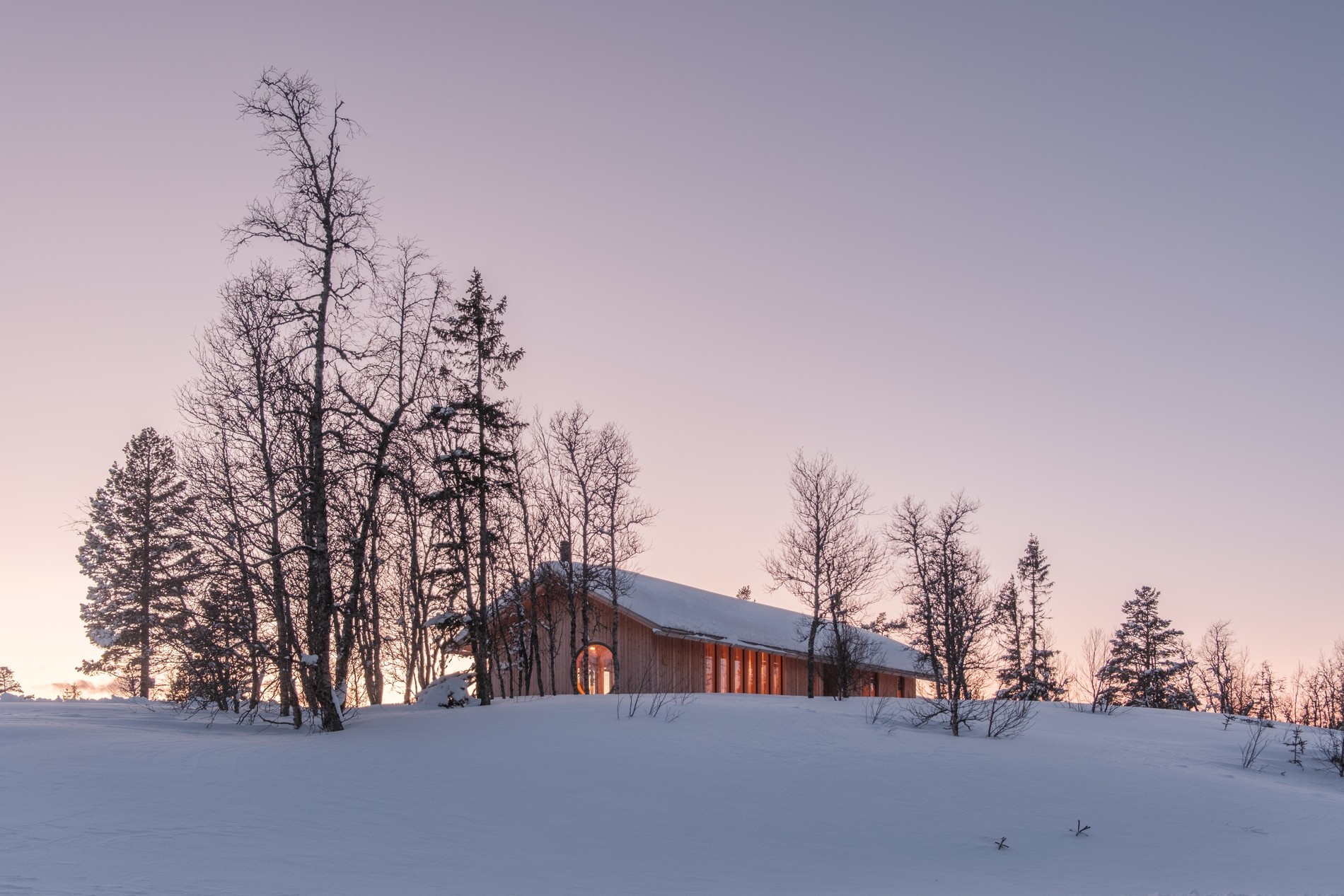 Chata je situována do svahu tak, aby se upínala k výhledům na nedotčenou krajinu národního parku Hardangervidda. A protože počasí tu umí být lehce extrémní, v zimě umí okolí zmizet pod metry sněhu, nabízí v něm klidné útočiště svým obyvatelům. Je ztělesněným pohodlí, v němž se mísí tradiční design s moderním bydlením. A povšechně jde o objekt, který se nebojí pustit si syrovou krásu norské horské přírody víc k tělu.