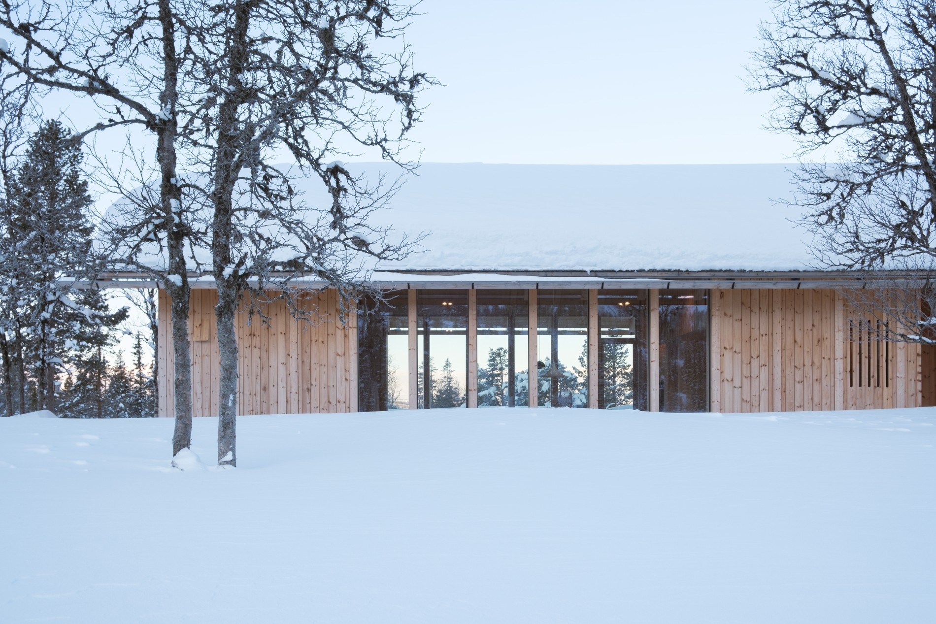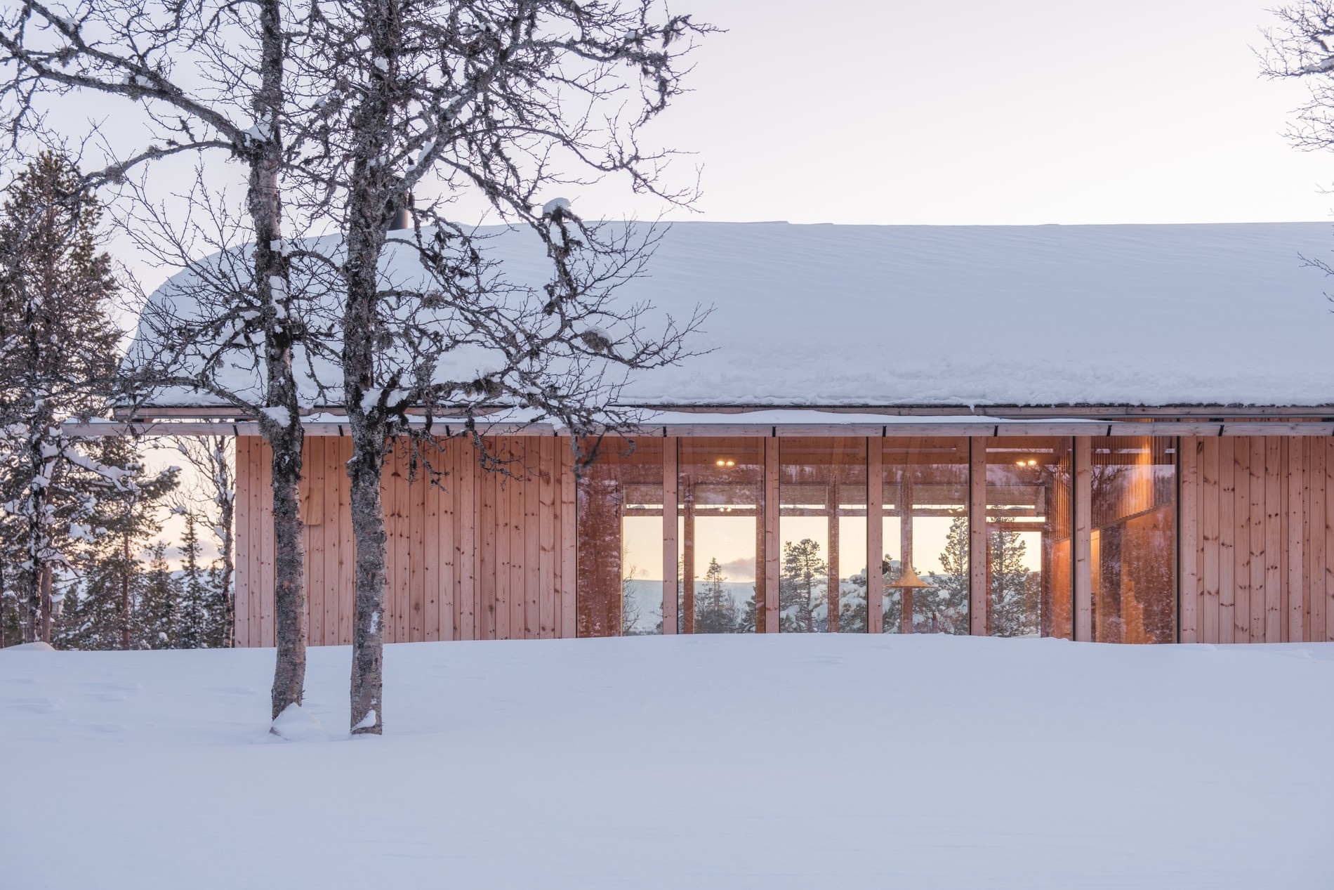 Zvou krajinu dovnitř, rozpouští hranici mezi interiérem a exteriérem a zvýrazňuje krajinu, která se neustále mění, na níž je založen život v kabině. Jsou to vlastně dvě tváře téhož kouzla: chata vám představuje divokou nádheru severské zimní krajiny, a pocitově vyvolává ohromení i chlad. Z něj ale nabízí cestu ke komfortu vyhřátého a dřevem vonícímu interiéru, z nějž je možné ty krásy pohodlně obdivovat.