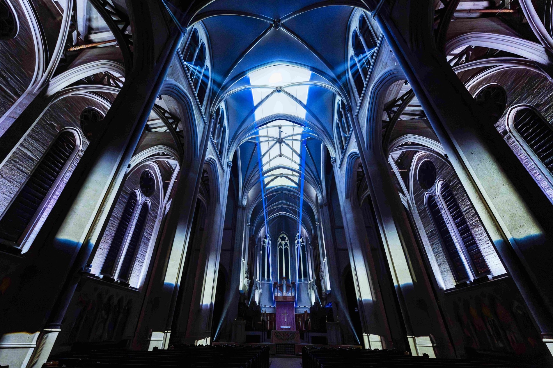Mystický dialog světla a architektury: Aura od Moment Factory v sanfranciské katedrále