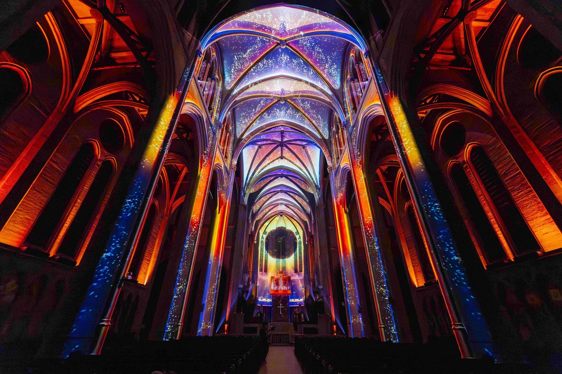 Mystický dialog světla a architektury: Aura od Moment Factory v sanfranciské katedrále