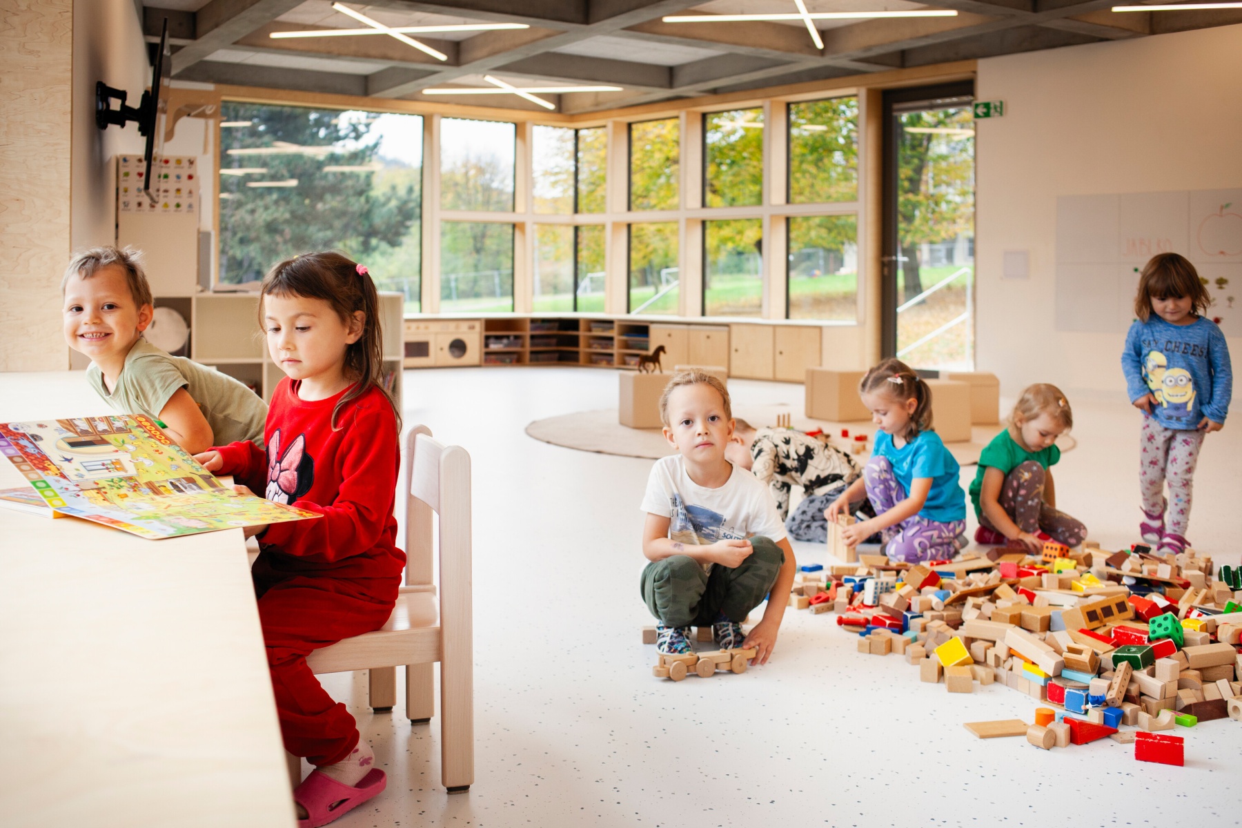 Členitá hmota školky prorůstá volně zahradou