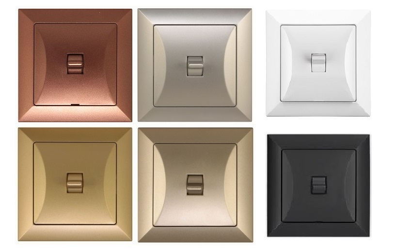 - Zásuvky: Jednoduché i dvojnásobné provedení, které designově přesně ladí s vypínači.