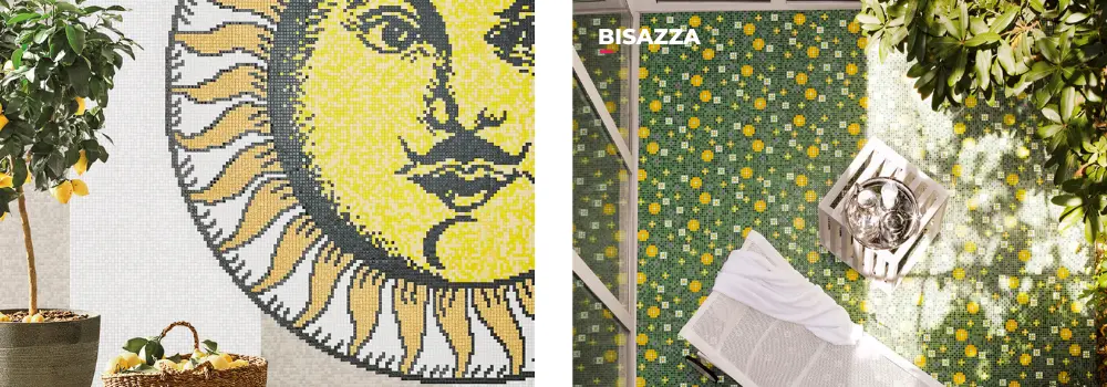 - Bisazza – Mosaico: Skleněná mozaika s promyšlenou strukturou, přetvářející prostor k nepoznání.