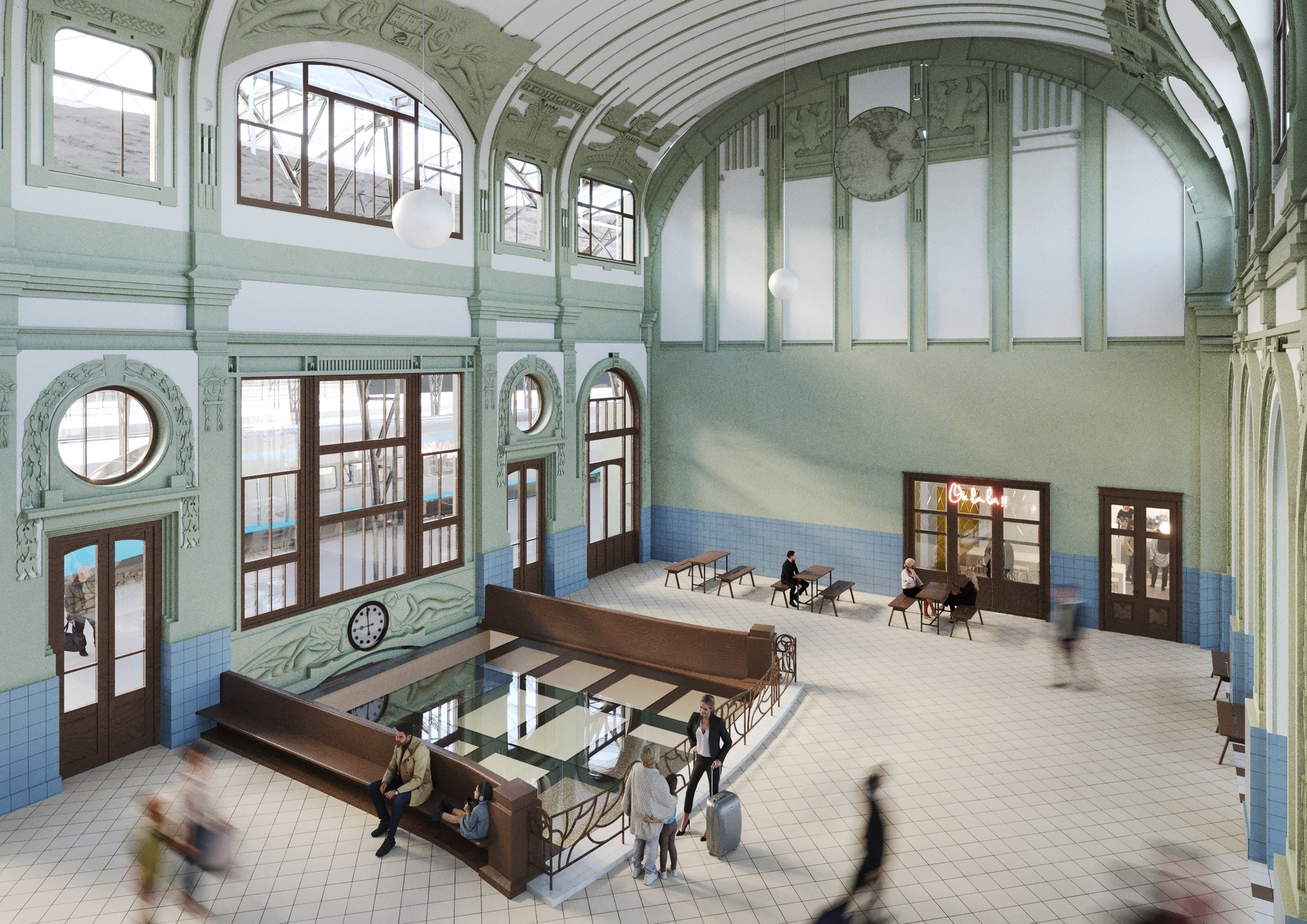 Secesní architektura Josefa Fanty a modernizace nádražní budovy v Praze. Zdroj: Správa železnic, DigiTry Art Technologies
