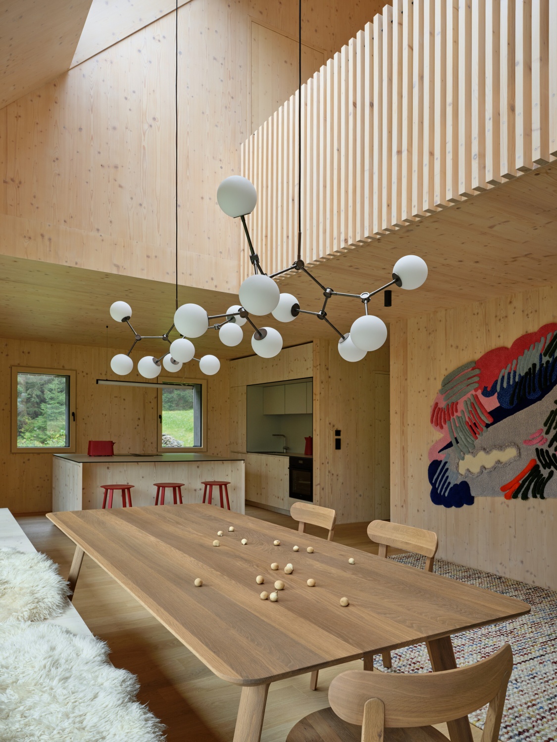Hlavní obytná místnost, jídelna, kuchyně – 1.NP. Foto: BoysPlayNice