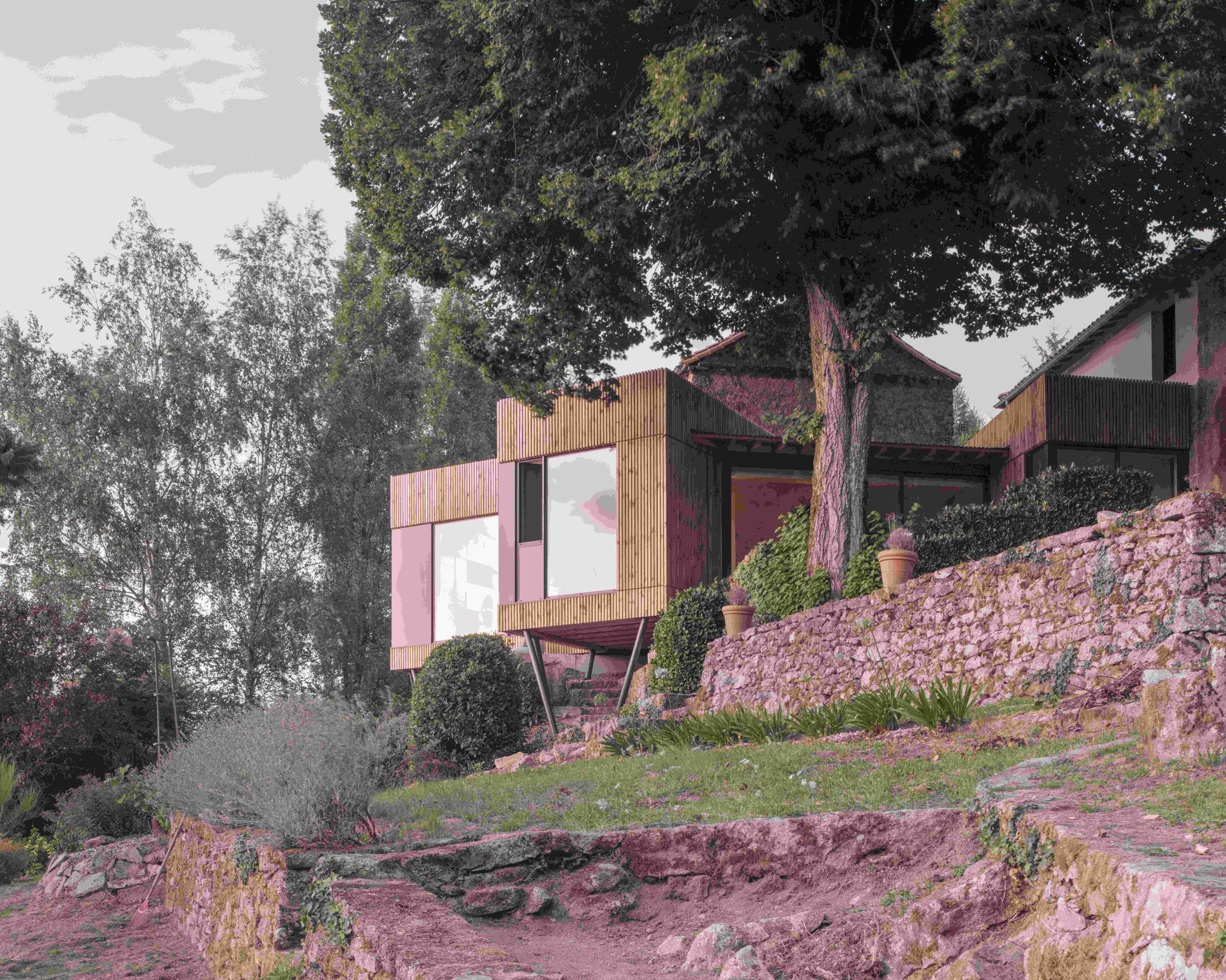 S kaplí za zády, s řekou pod sebou. Přístavba z Francie umí splynout s místem