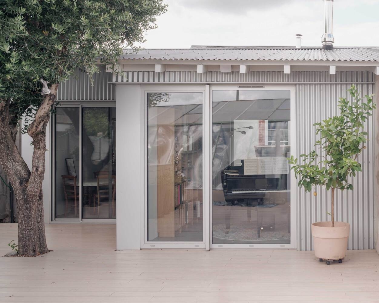 Je to ostatně patrné i z toho, že přístavba zároveň zachovává dva vzrostlé olivovníky, po předchozích majitelích. Olivovníky mohou růst stovky let, a tak by asi bylo škoda je likvidovat jen kvůli takové malichernosti, která ve výsledku zvýšila užitnou plochu domácnosti na 137 metrů čtverečních. Z té vyčíslené rozlohy to tak úplně nevyzní, ale majitelé domu si skutečně polepšili. I díky tomu, že chytře řešená přístavba sice nenásobí metry rozlohy, ale násobí možnosti. V případě hezkého počasí se skrze přístavbu stává „obyvatelnou“ celá zahrada. A zájem obyvatel o pobyt venku nevyprchá ani s příchodem podzimu, díky kryté terase.