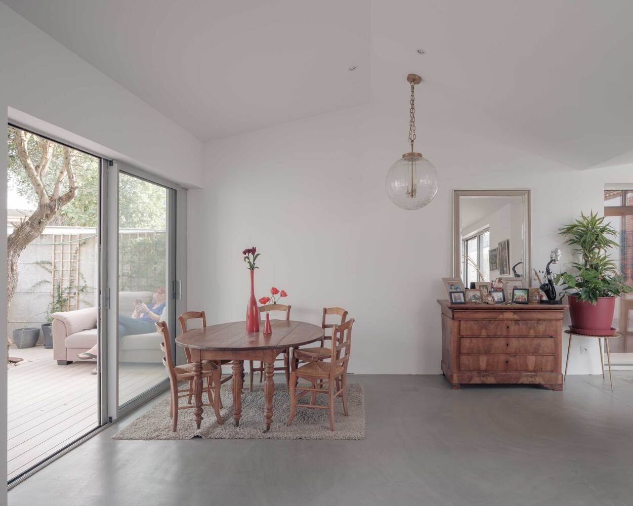 Je totiž třeba zaskočit do roku 2023, kdy se architekti ze studia Atelier Ose Architecture k zakázce na stavební úpravu tohoto domu. Pod vedením šéf-architekta Théo Viviena měli dohlédnout na to, aby se stavba s minulostí dotkla současných standardů a dočkala se i hezké budoucnosti. Předpoklady k tomu totiž jistě měla. Ačkoliv k velkým zrovna nepatřil, měl potenciál k růstu dál do zahrady. Ostatně, ta zahrada právě zvyšovala atraktivitu celého domu. A na tom i současný projekt svou vizi staví.