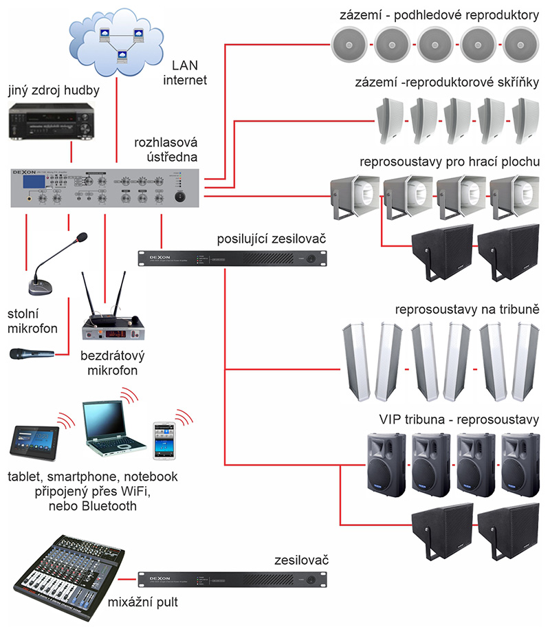 Je vašemu komentátorovi rozumět? Zahuhlaná hudba s ozvěnou sráží úroveň sportovní akce. Kvalitní ozvučení Dexon vybudí atmosféru, zlepší fandění a vybičuje sportovce k lepším výkonům.