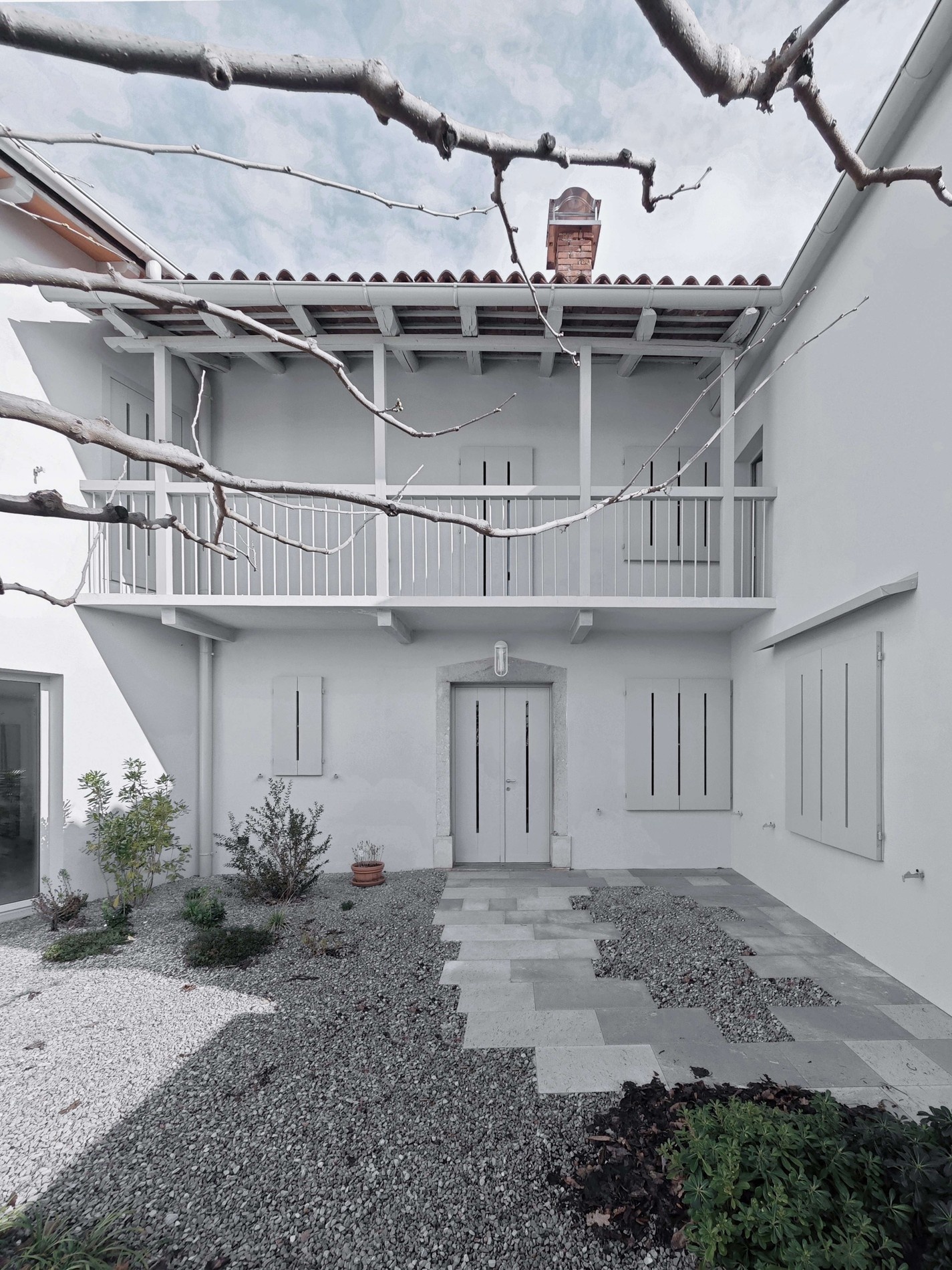 Další prvky, jako horní pavlač zvaná gank, kamenné zdi, dřevěné okenice škure a těžké střešní tašky korci, jsou obnoveny a citlivě reinterpretovány. Foto: J. Martinic