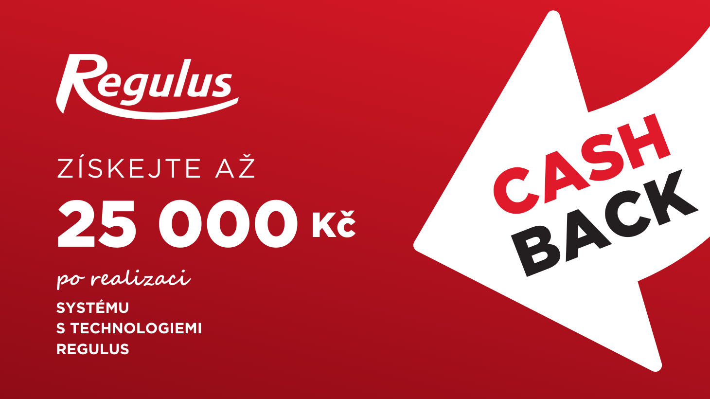 Pro návštěvníky veletrhu je připravena speciální akce – cashback až 25 000 Kč při realizaci systému s technologiemi Regulus. Výše bonusu se odvíjí od rozsahu instalace. Podrobnosti, podmínky i způsob uplatnění vám rádi vysvětlíme osobně na stánku.