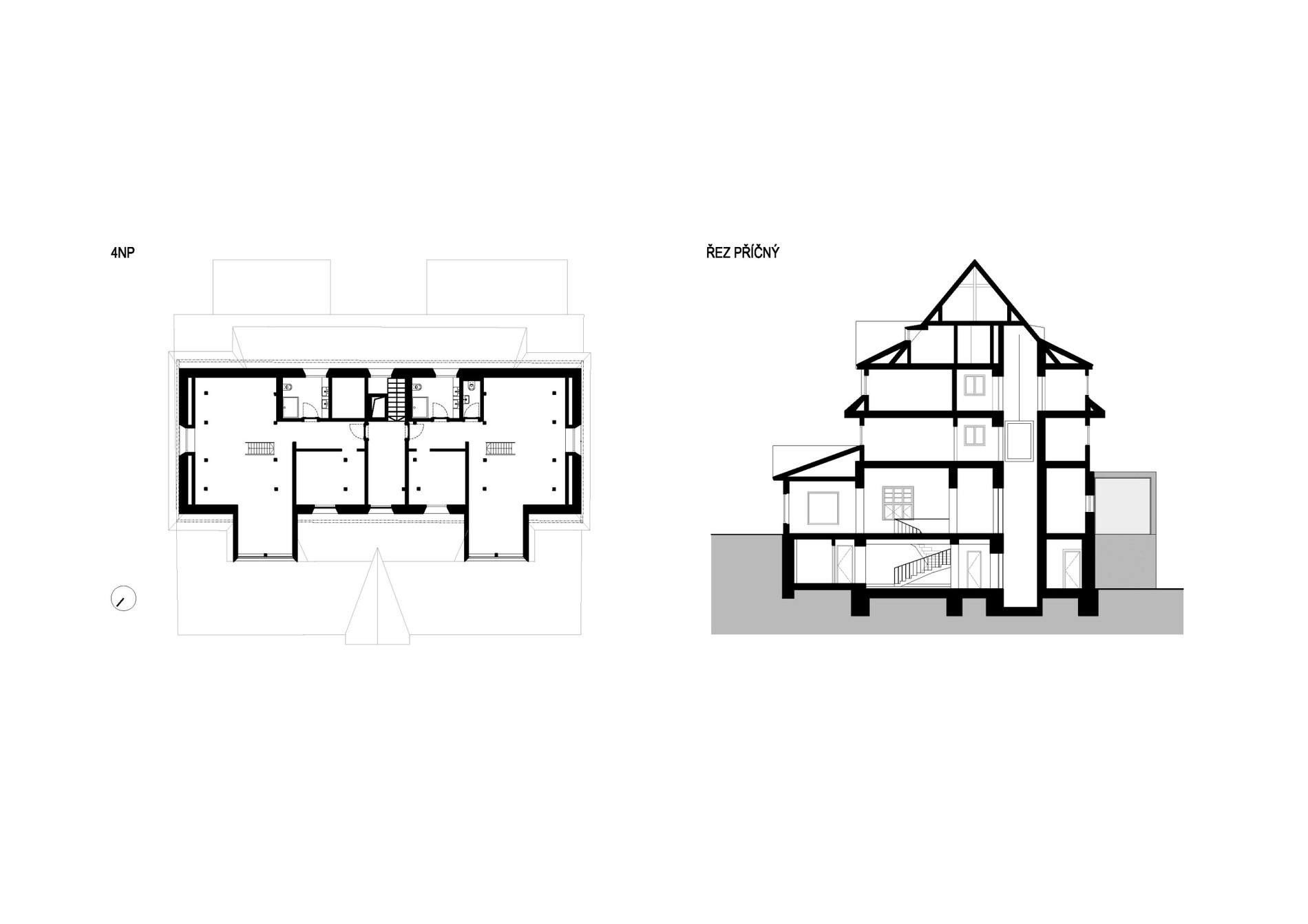 Půdorys 4.NP, řez. Zdroj: STUDIO ADR