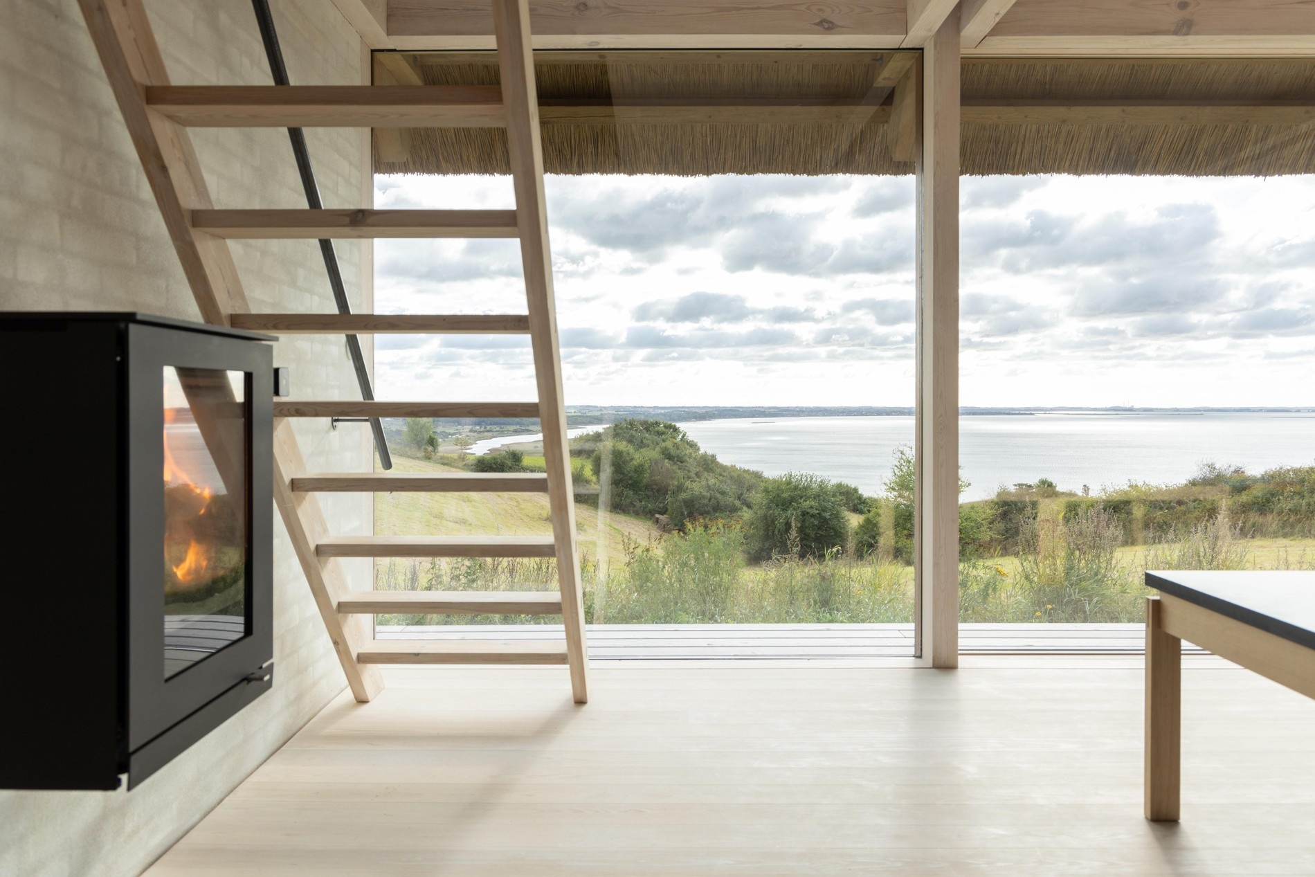 Nová přístavba také skrývá dramatický zapuštěný vstup vytesaný do svahu, vedoucí pod nízkou doškovou střechu a krytou chodbou uprostřed nové přístavby. Foto: Andrea Agatzke