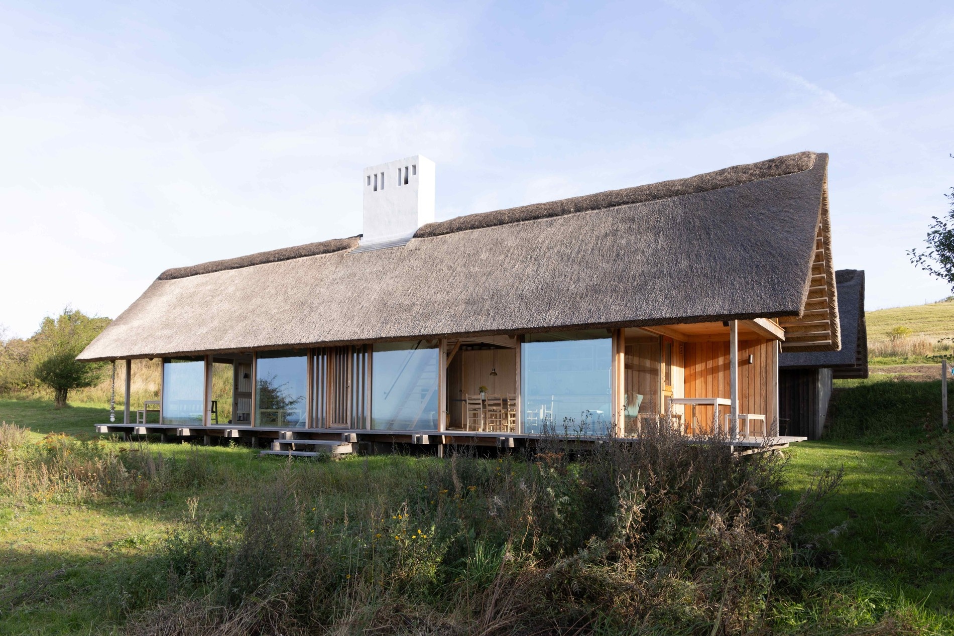 Stavba podle staré kresby ze skicáku. Dánský dům s doškovou střechou má příběh