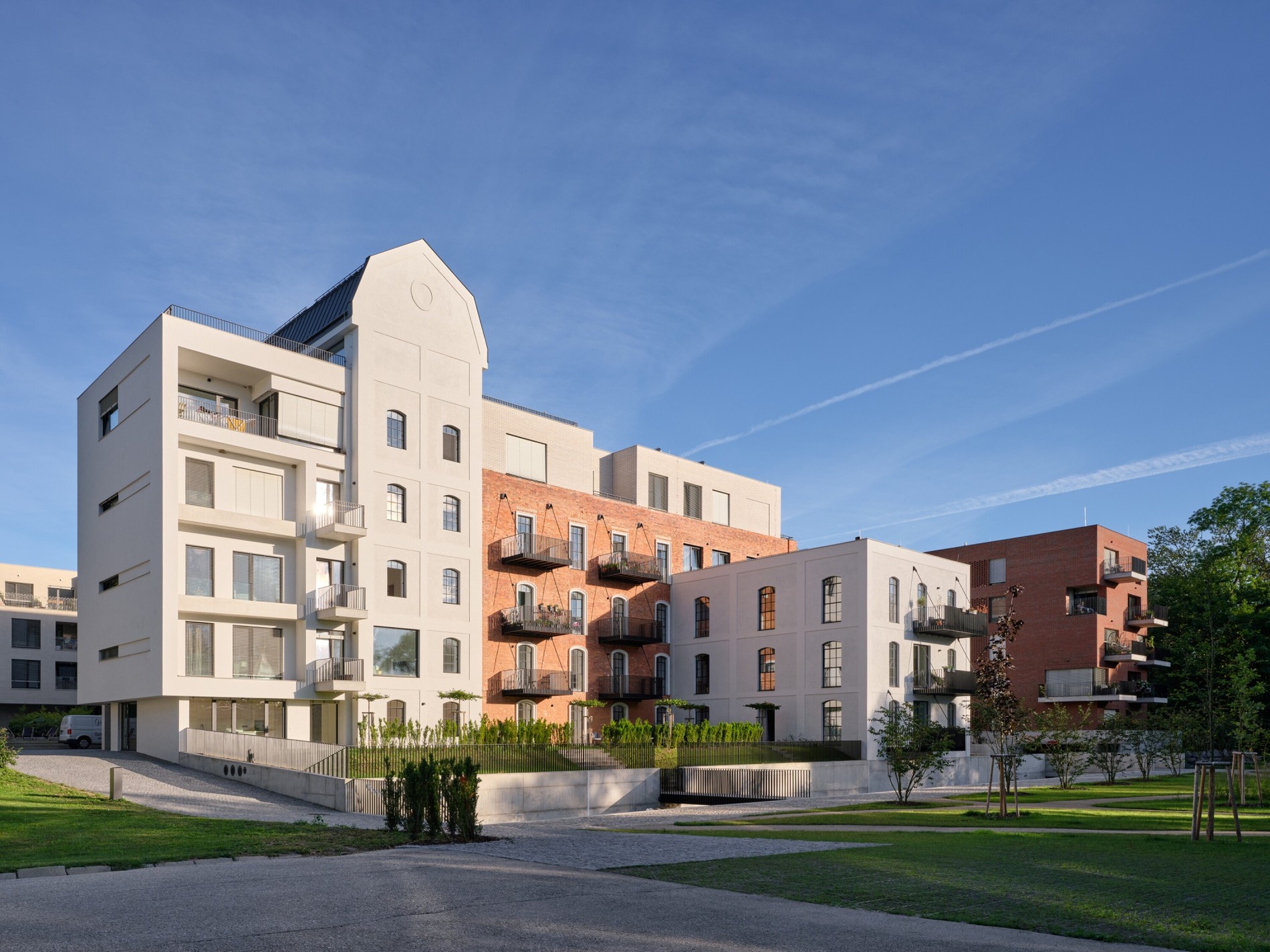 Celý projekt stojí na jednoduché myšlence: ponechat maximum industriálních prvků, doplnit je o jasně čitelné současné zásahy a vytvořit harmonický celek. Zámeček, silo, správní budova, nové domy, náměstí i park u řeky dnes tvoří jeden organismus, který si zachovává svou paměť a zároveň nabízí plnohodnotné bydlení.