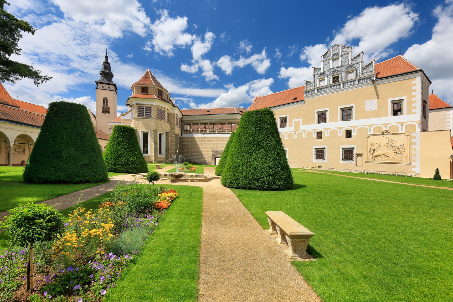 Státní zámek Telč, zámecká zahrada s reliéfem Neptuna. Zdroj: Národní památkový ústav (NPÚ)