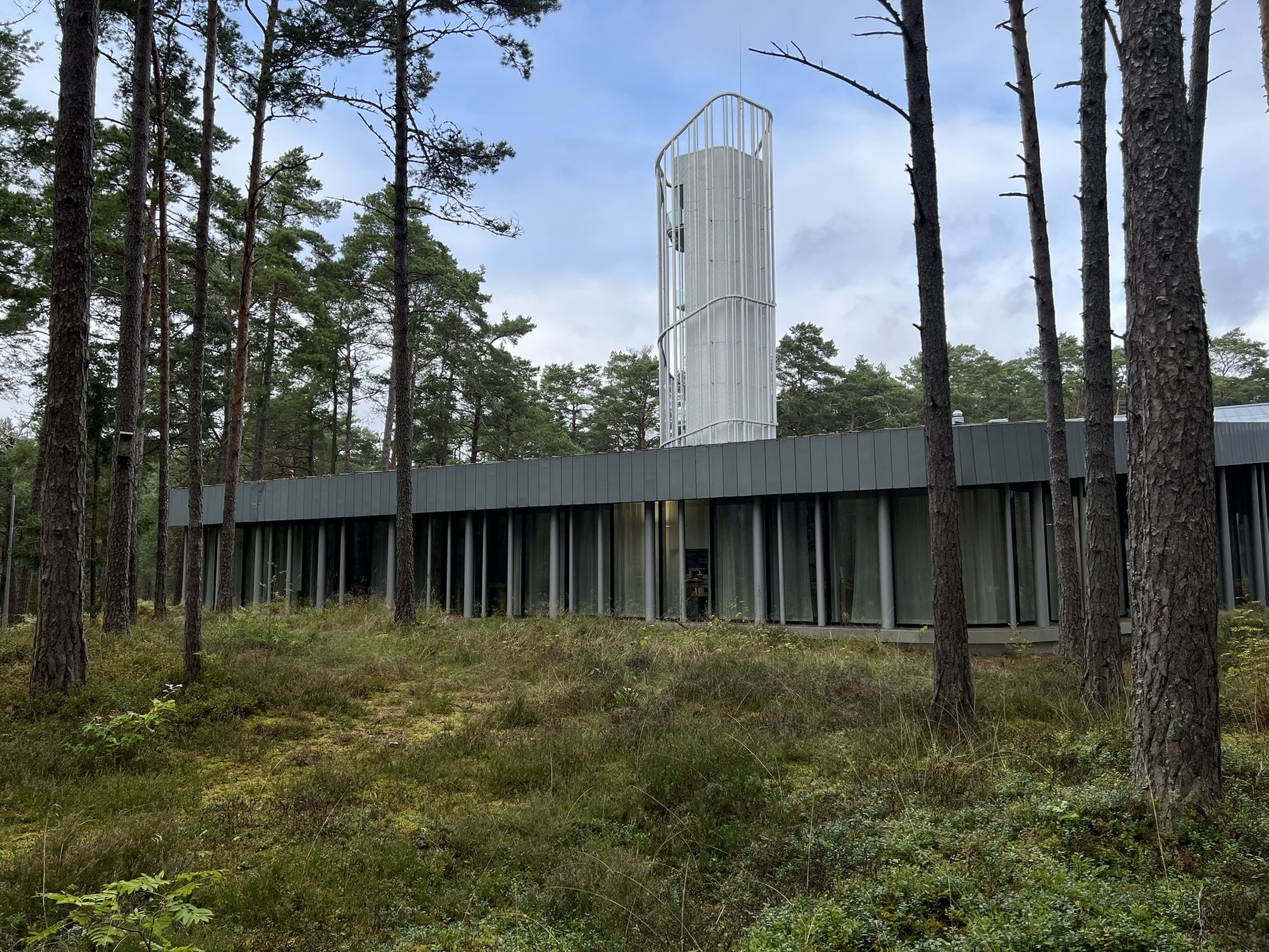 Konstrukce pracuje se svislými sloupky, které mají imitovat všudypřítomné borovice a velké okenní plochy, které stavbu opticky odlehčují a umožňují pronikání světla i vůní lesa do interiéru. Velká část objektu je obložena v dubovém dřevu podporující pocit tepla a soustředění. Stavba byla otevřena veřejnosti v říjnu 2018.