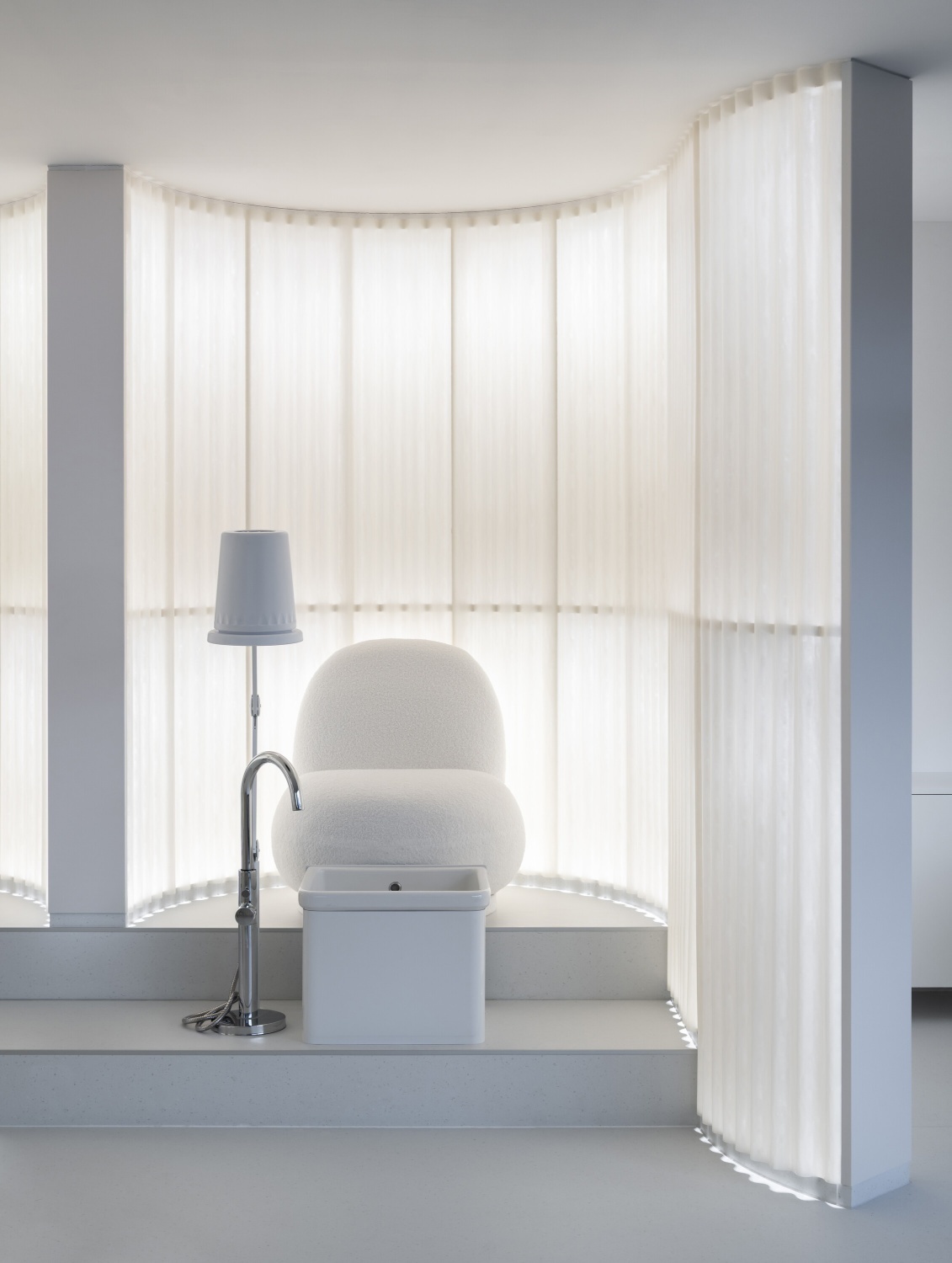 Skvělý interiér nehtového studia. Působí jako divadelní scéna