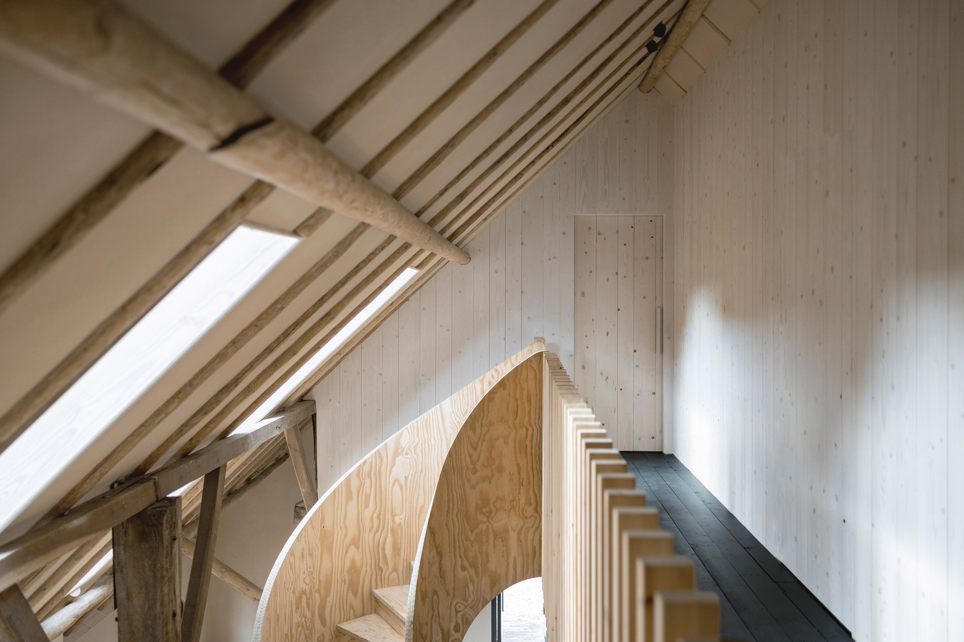Tato překližková verze posiluje étos čistoty a jednoduchosti, který je tak vlastní projektu přestavěné a zobytněné stodoly v Ahof.