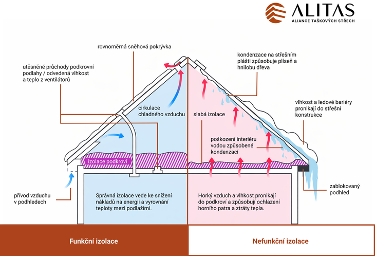 Pokud kontrola ukáže, že zateplení střechy nefunguje správně, není důvod řešení odkládat. Jaro je ideálním obdobím pro vyhodnocení stavu střechy, návrhu potřebných úprav a přípravu oprav tak, aby bylo možné je provést včas a bez zbytečných komplikací. Navíc se aktuálně čeká na upřesnění podmínek dotačních programů, a pokud je majitel domu už rozhodnutý problém řešit, vyplatí se mít vše připravené předem. Díky tomu bude možné reagovat hned po vyhlášení podmínek a neztrácet čas administrativou,“ uzavírá Jakub Hemza z Aliance taškových střech.
