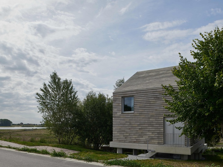 Zřetelně se odlišuje, ale činí tak, aniž by na sebe strhával pozornost. Není přehlídkou extrémů, nevyvolává údiv. Je jiný ale docela místu příslušný, přiměřený. Nedotkne se vás tím, že by vyčníval a nezapadal. Je to prostě jen nový moderní dům, který se usadil ve vesnici, jen kousek od břehů řeky Waal. A zanechává ve vás dojem, jako kdyby ho snad velká voda na tohle místo zanesla už před sto lety, protože vypadá, že tam prostě patří.